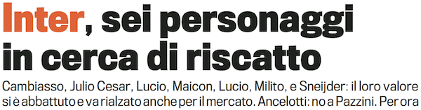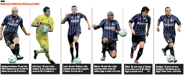 Cambiasso, Julio Cesar, Lucio, Maicon, Milito and Sneijder: their values have been demolished and have to be raised for the transfer market. Ancelotti: no to Pazzini. For now.
